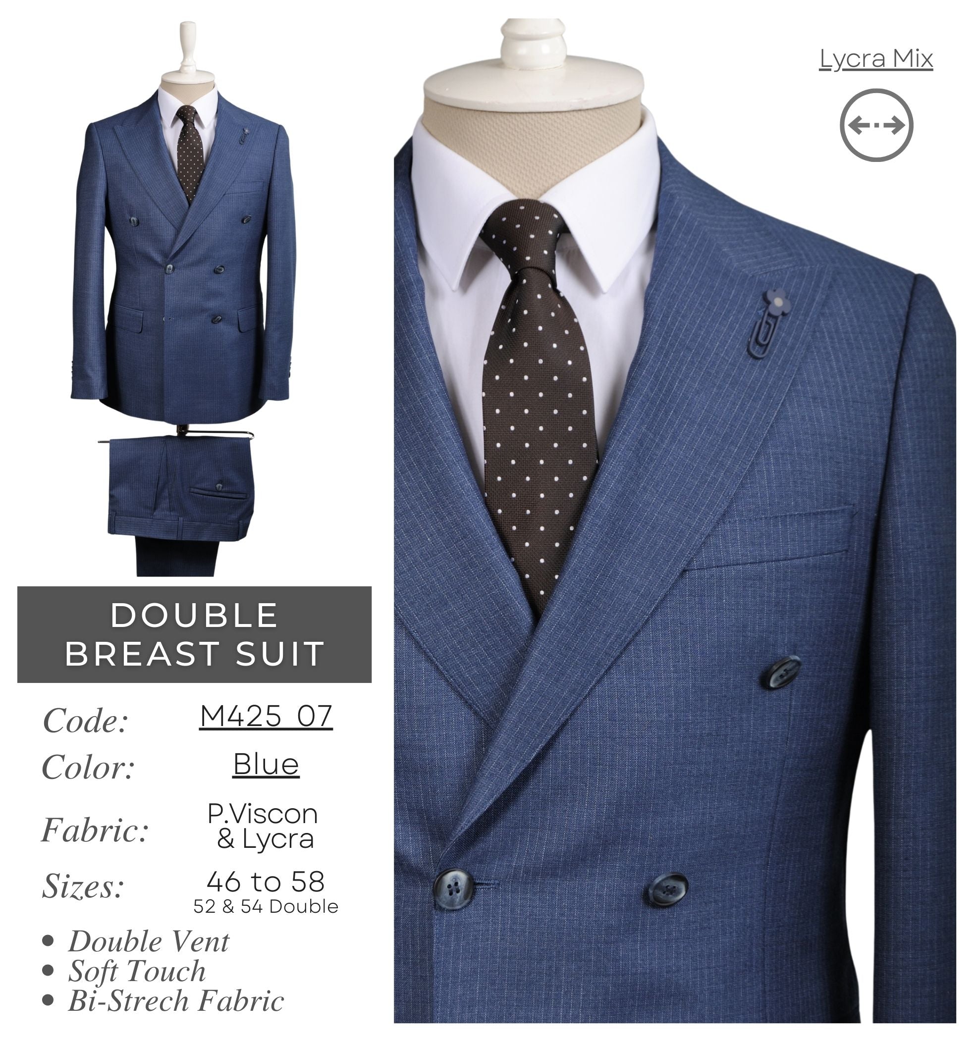 Place Your Wholesale Order Now and elevate your formal wear wholesale collection with this Blue Double Breasted Suit M425_07 - where style, comfort, and quality meet your wholesale business goals!
