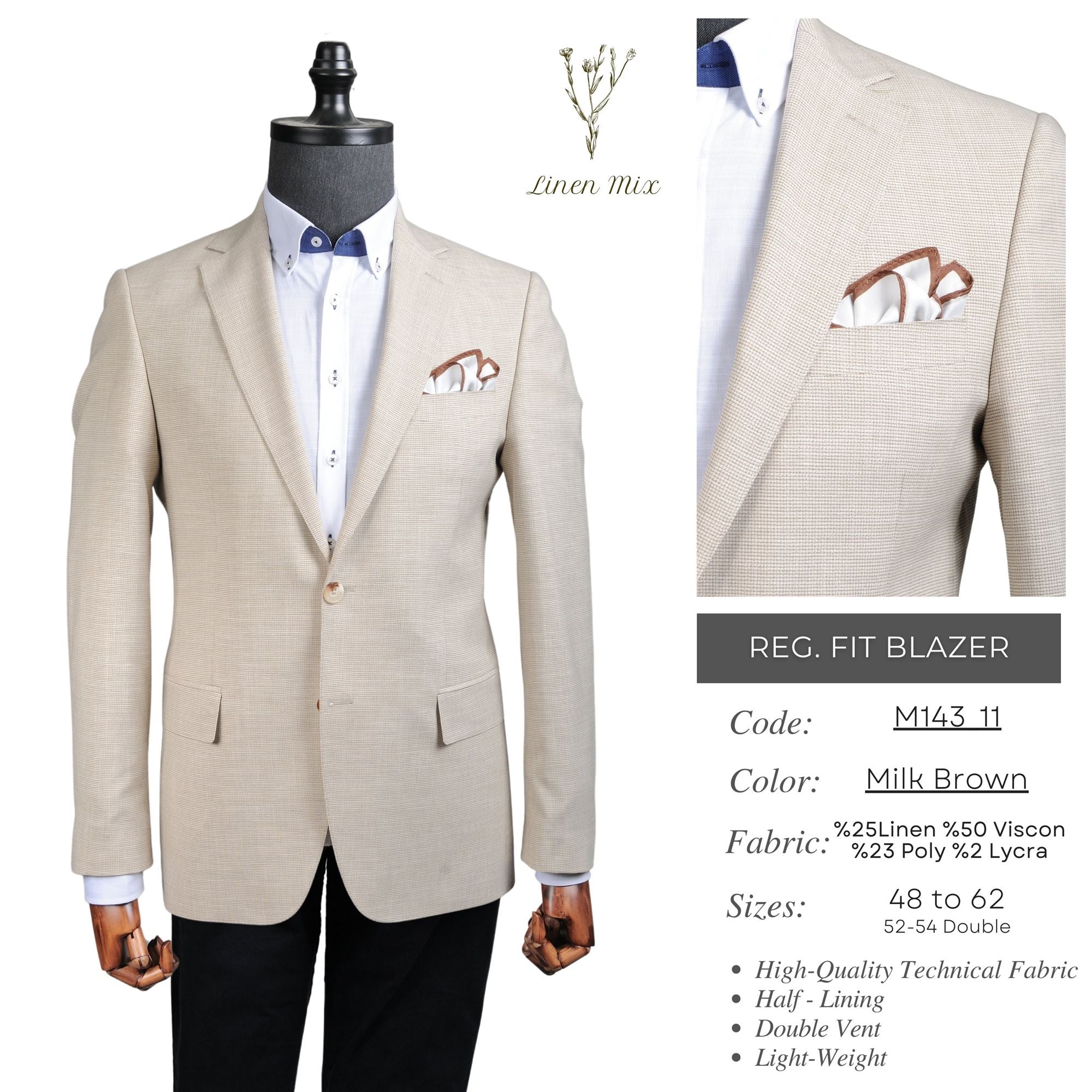 Place Your Wholesale Order Now and elevate your formal & smart - casual wear wholesale collection with this Milk Brown Reg. Fit Blazer M143_11 - where style, comfort, and quality meet your wholesale business goals!