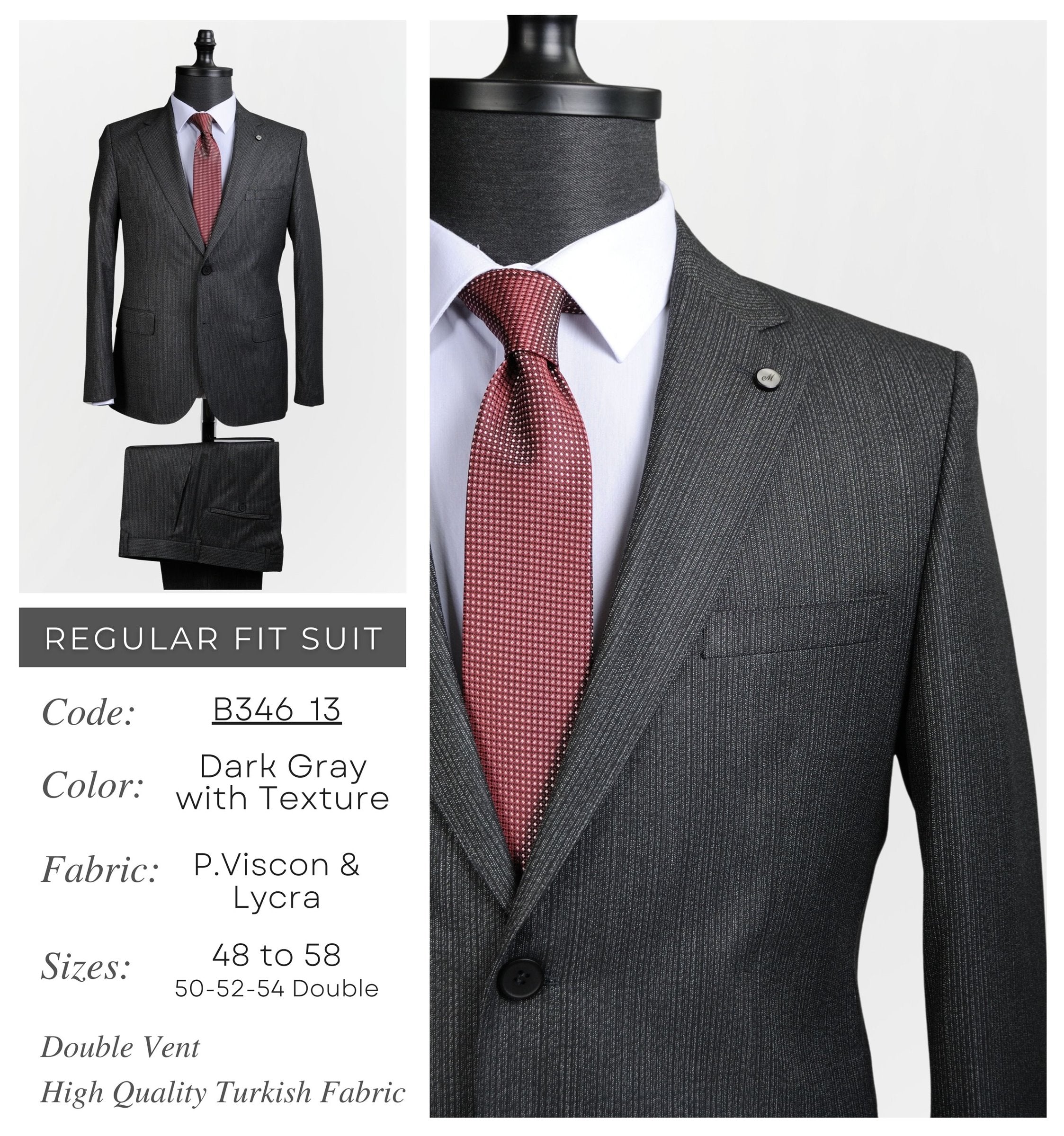 Place Your Wholesale Order Now and elevate your formal wear wholesale collection with this Dark Gray with Texture Regular Fit Suit B346_13 - where style, comfort, and quality meet your wholesale business goals!