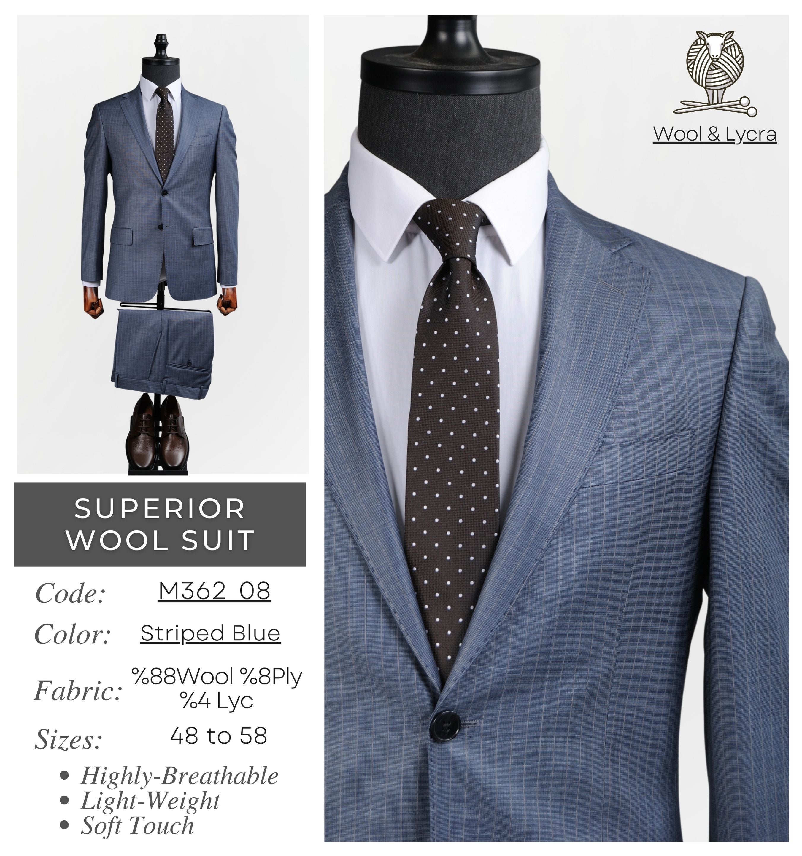 Place Your Wholesale Order Now and elevate your formal wear wholesale collection with this Men's Striped Blue Superior Wool Suit M362_08 - where style, comfort, and quality meet your wholesale business goals!