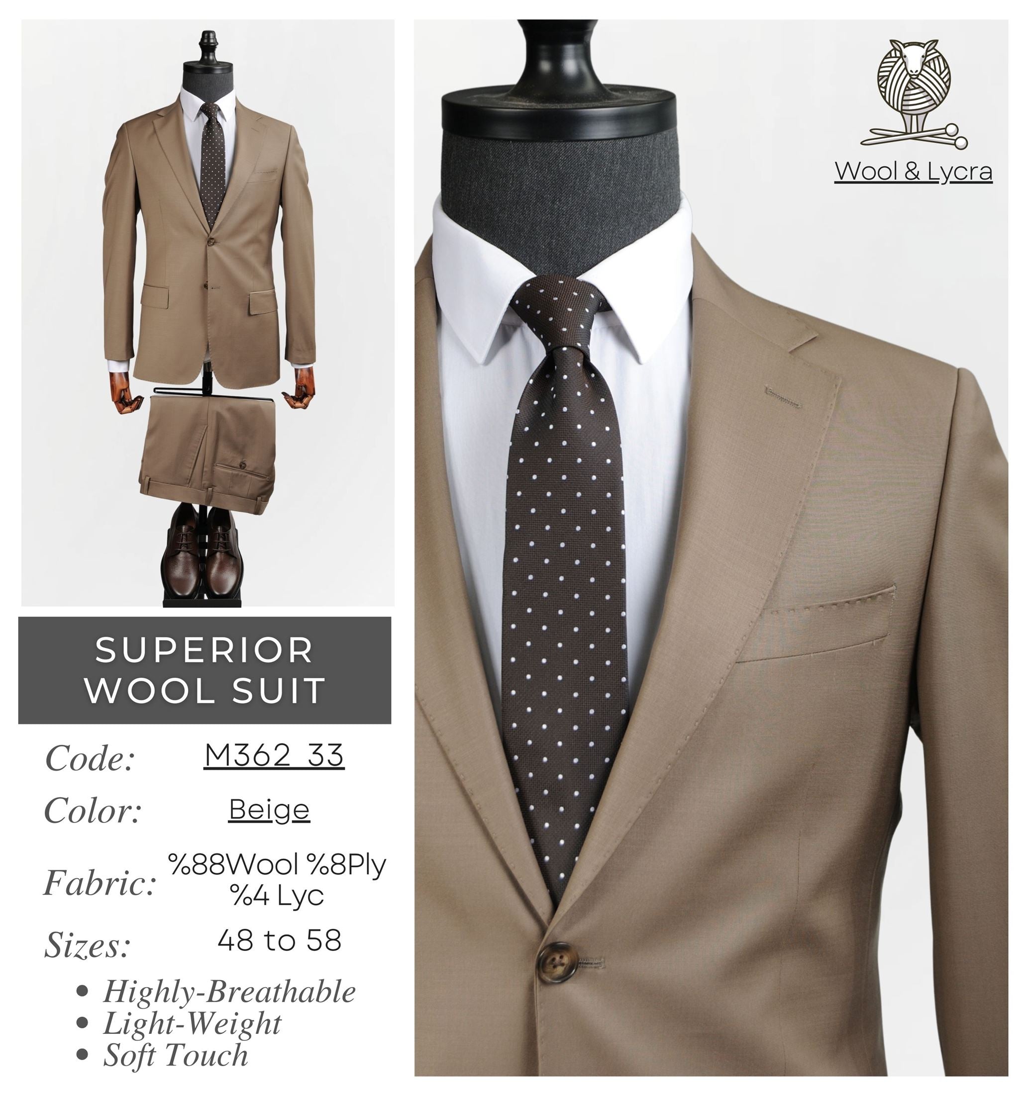 Product Name: Beige Superior Wool Suit M362 33